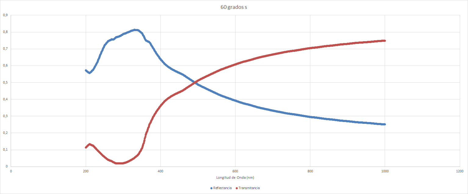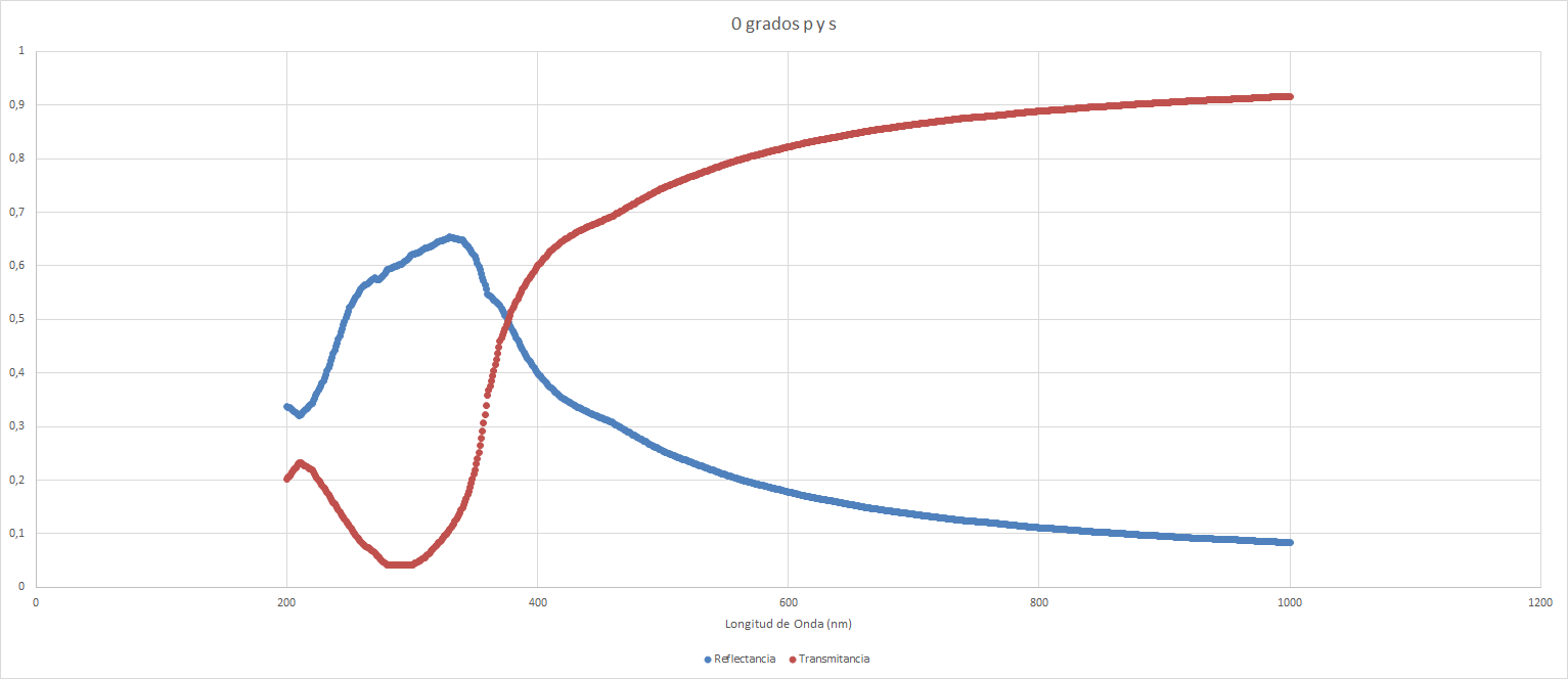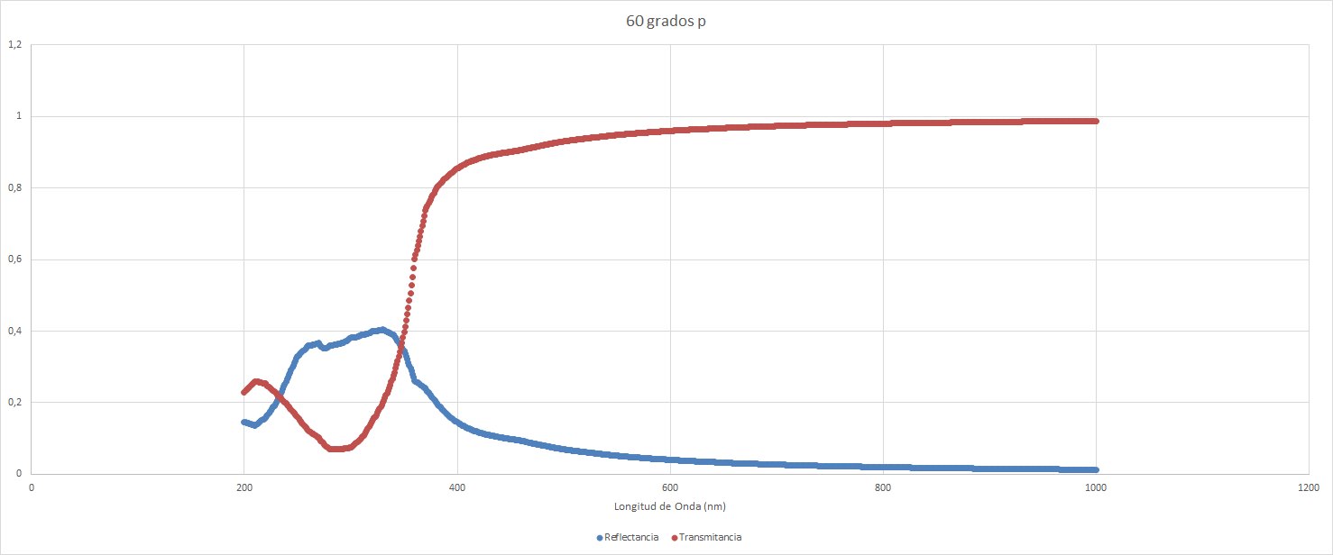 Por otro lado, el uso de polarización tipo p demuestra una mejor transmitancia para igual ángulo de incidencia.