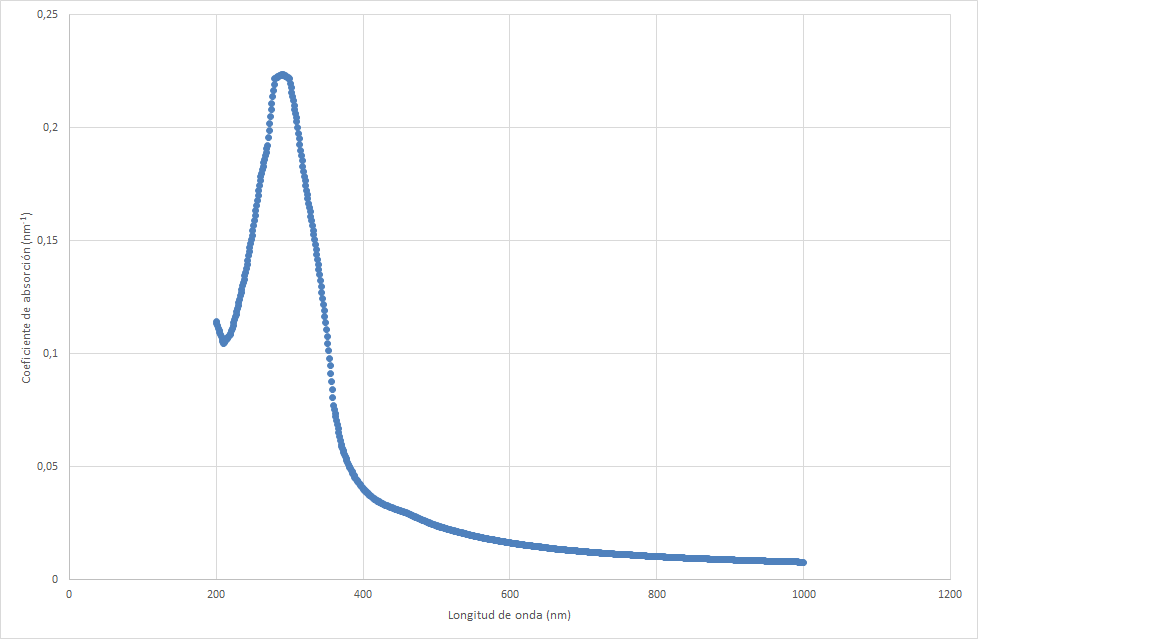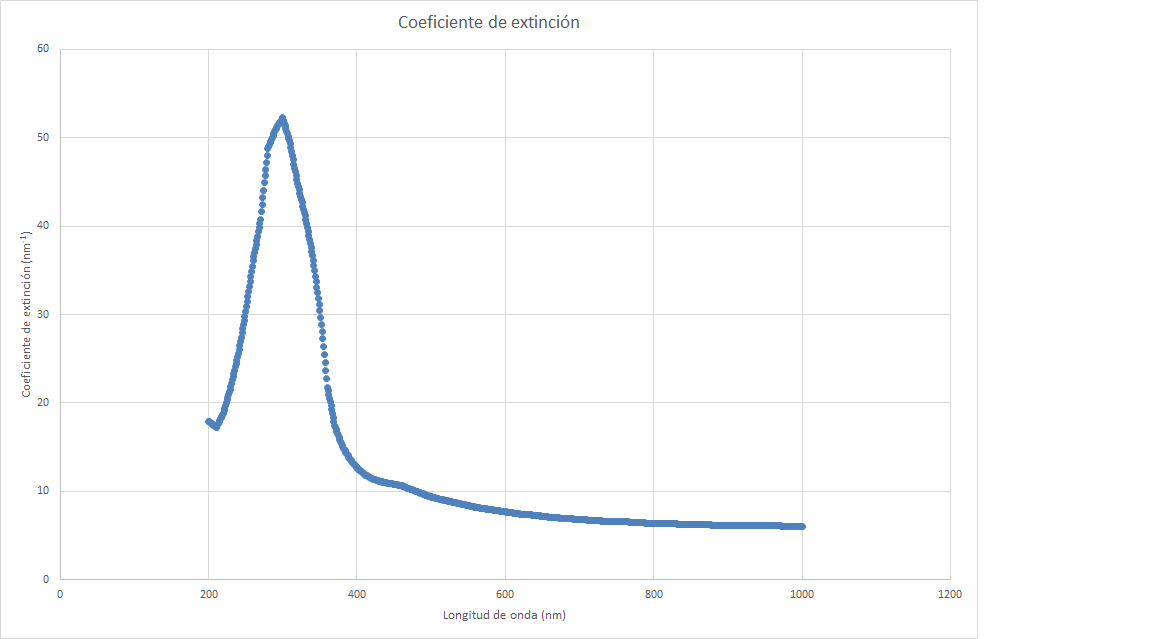 Por otro lado, el coeficiente de extinción puede ser graficado análogamente, siguiendo la igualdad que se presenta seguidamente: