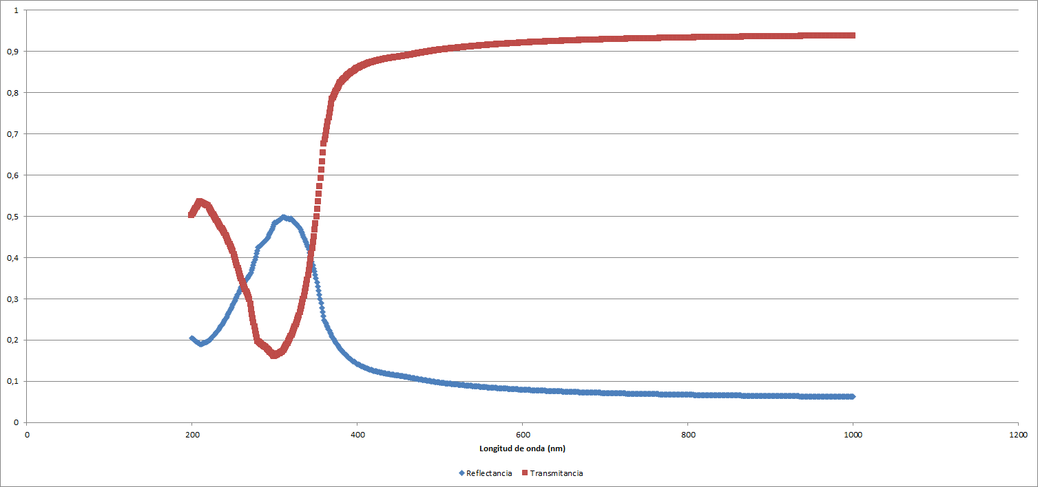 Para realizar el estudio se ha utilizado el simulador de filmetrics.com, que nos permite ver las gráficas de transmitancia, reflectancia y absorción de diferentes materiales.